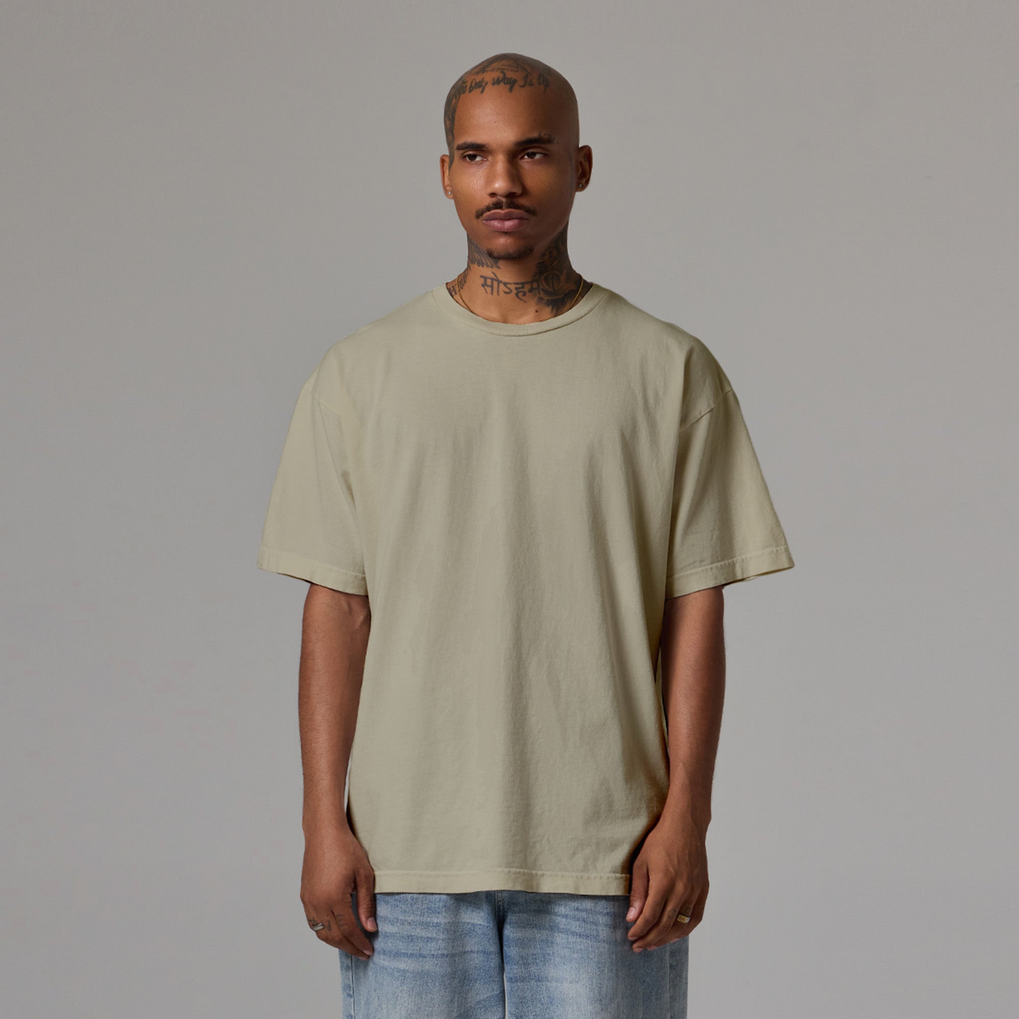 Boxy fit in heavy fabric w/ drapey shoulder seams