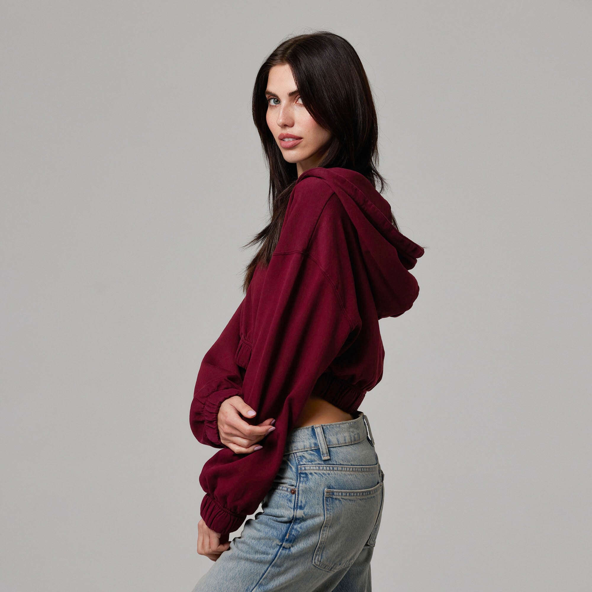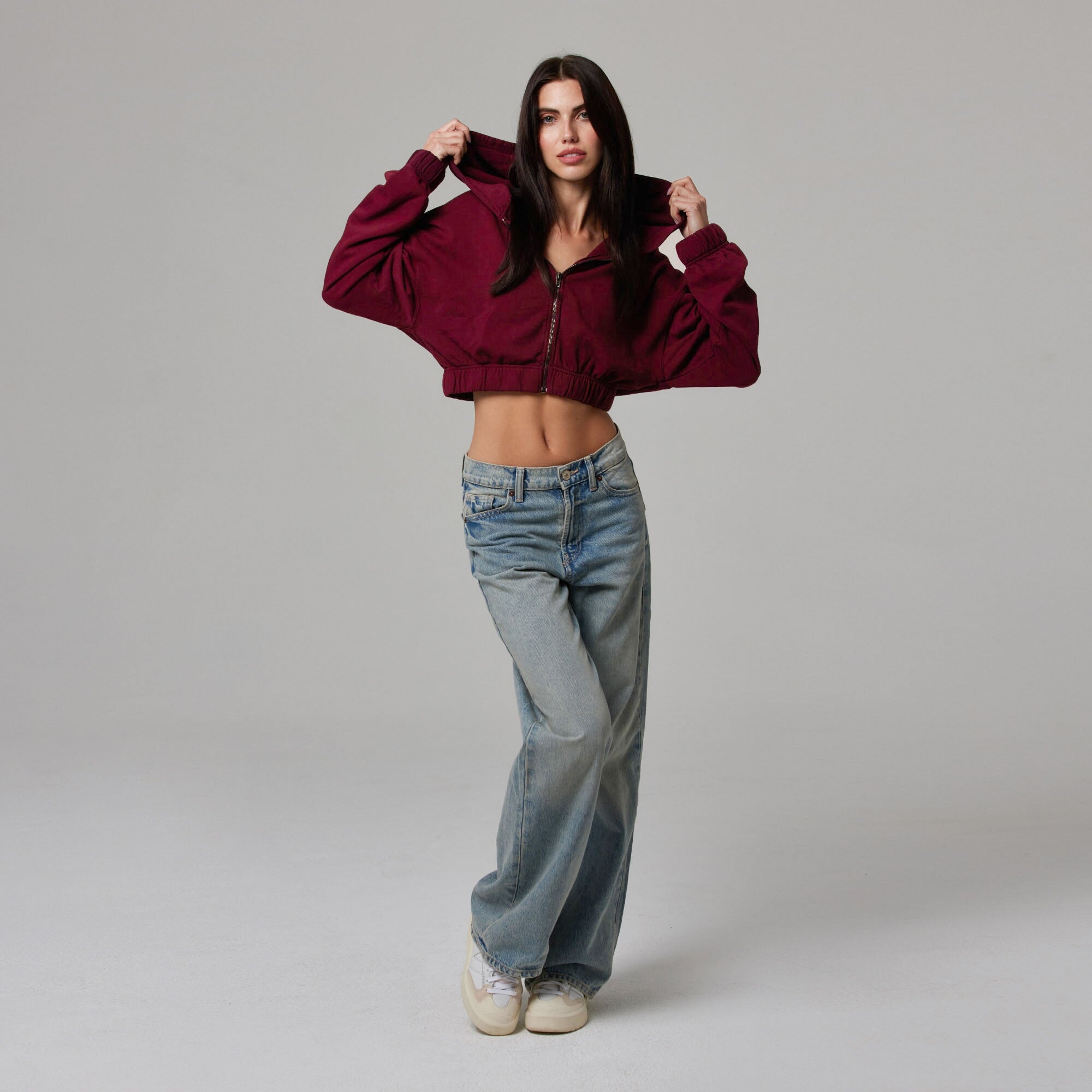 Upgrade your layers with the crop zip-up jacket. Constructed from 100% cozy combed cotton for an incredible lightweight feel. Featuring an elastic hem / elastic cuff, zip front, and crop fit. Whether you want to wear it zipped up as a top or unzipped to unveil layers beneath, this will be your go-to layer heading into season after season.