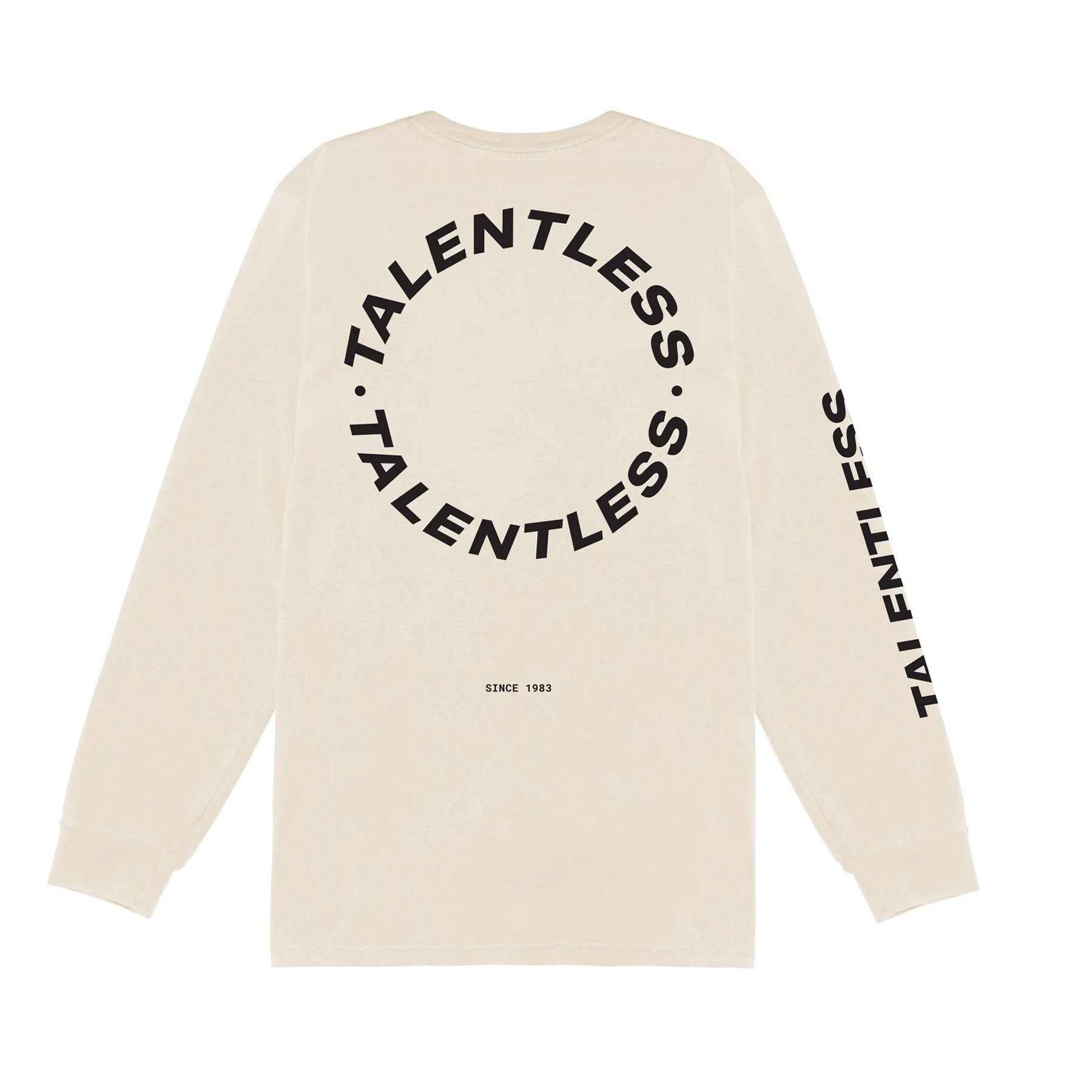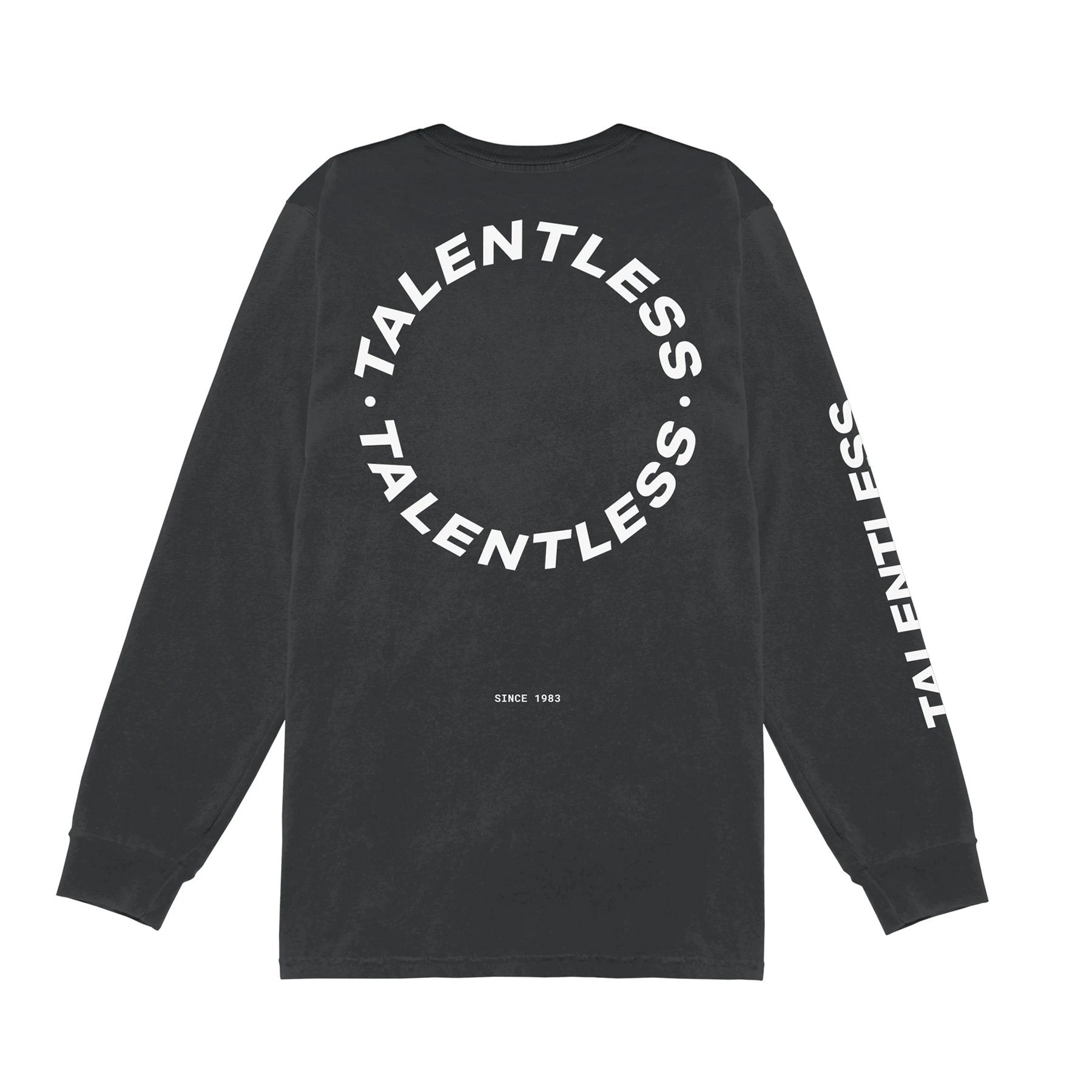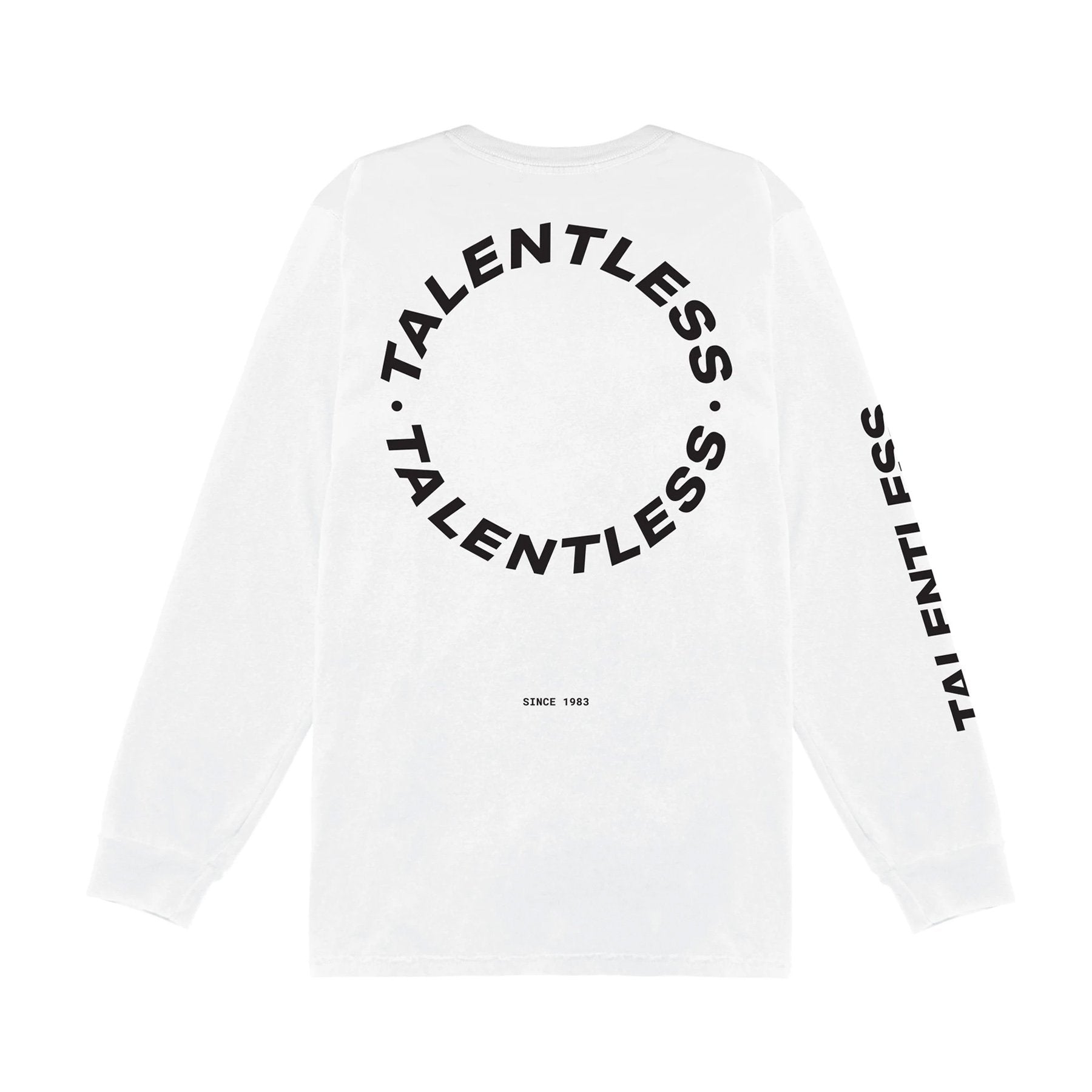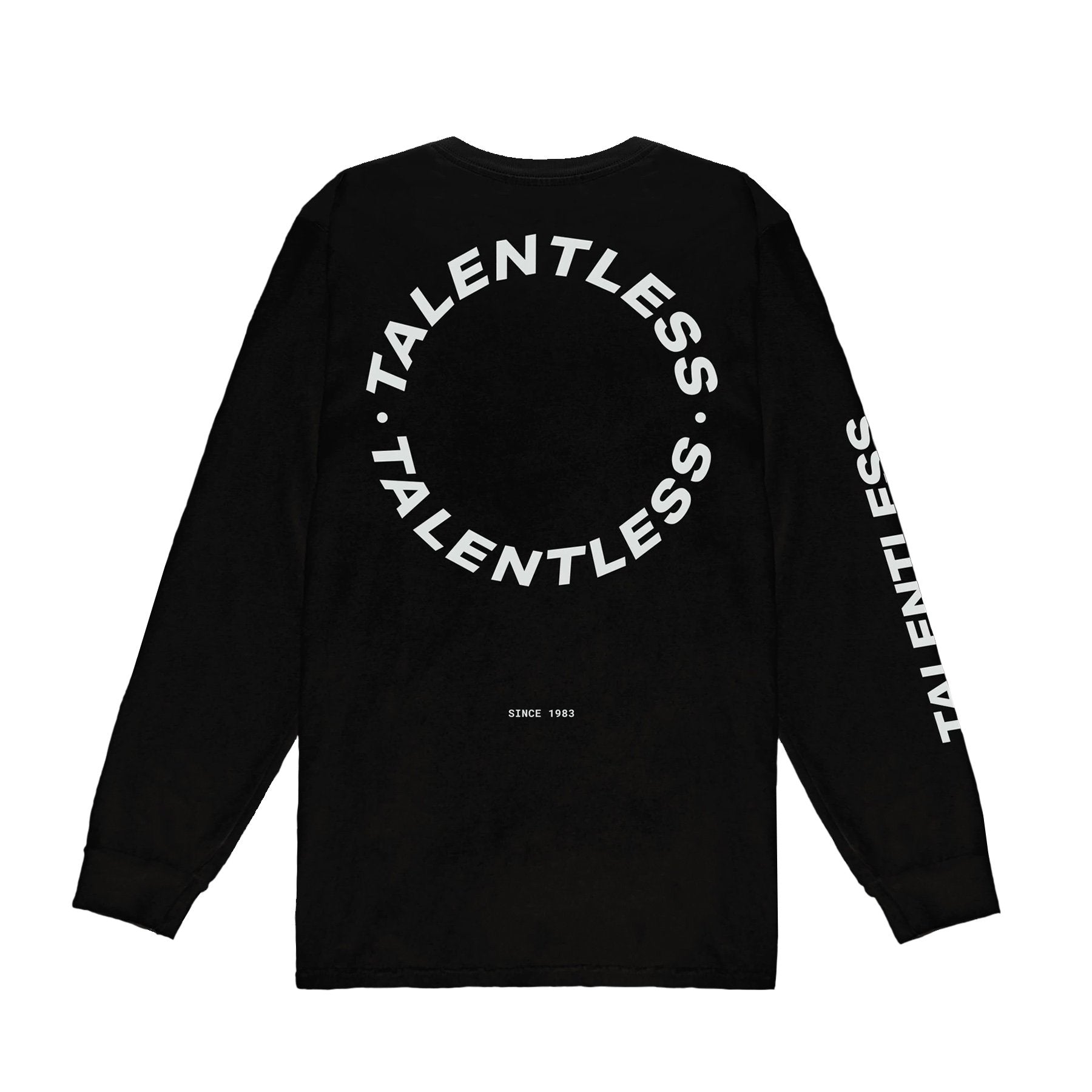 Our circle logo long sleeve was created to make a statement. With our best-selling circle TALENTLESS logo on the back, and Talentless branding on the front and sleeve, this essential basic has a modern edge.