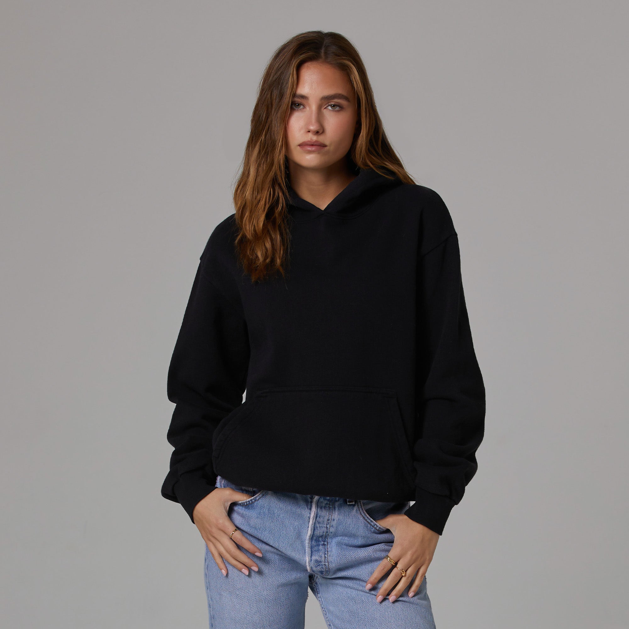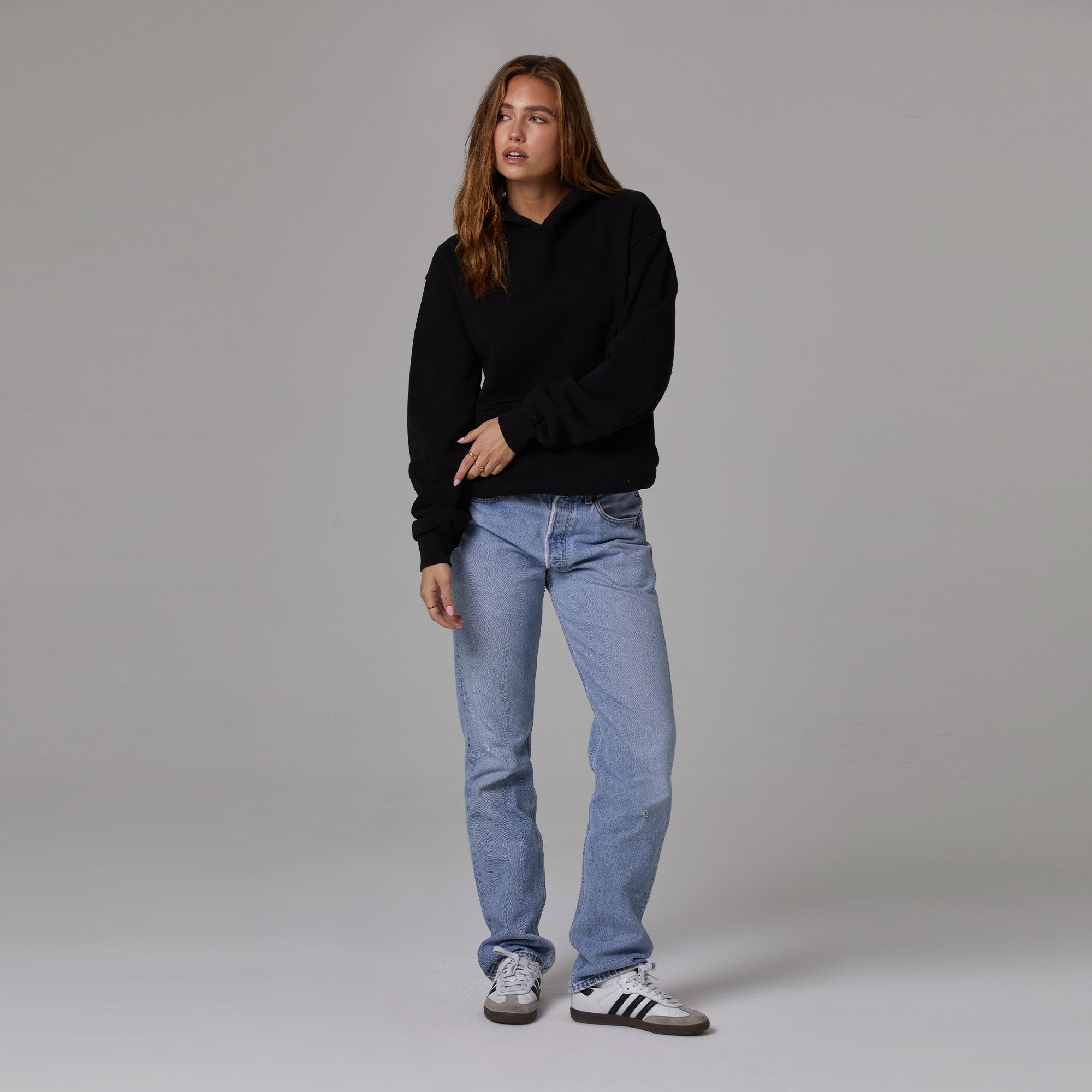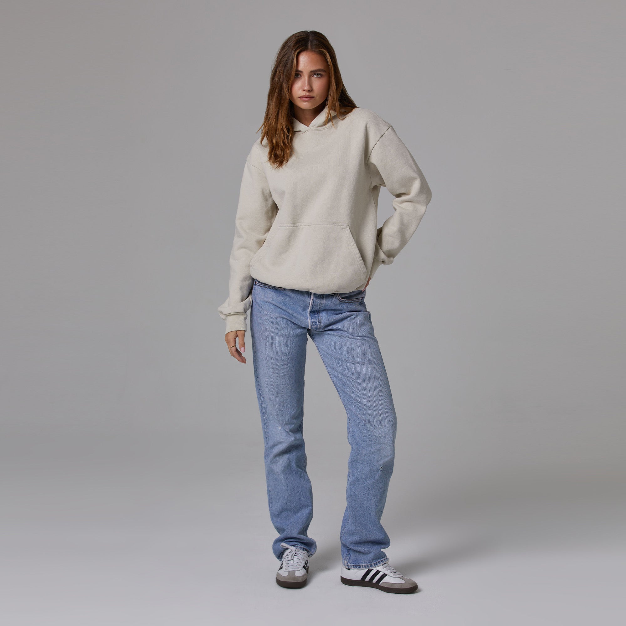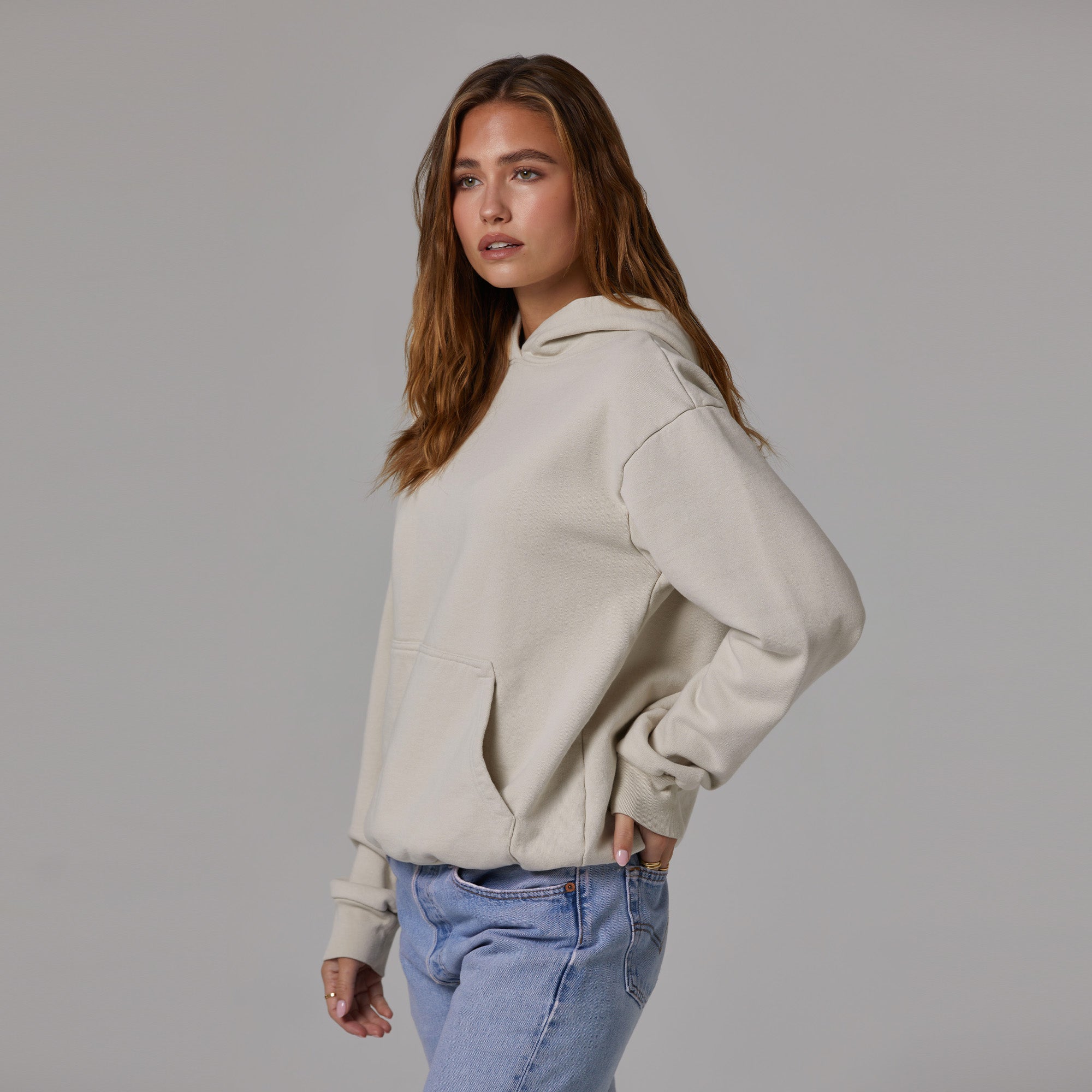 For the Women's Heavyweight Hoodie we recommend sizing up for a looser fit, otherwise the hoodie fits true to size. It is a classic fitting hoodie, if you're looking for a oversized fit, you could try our Men's Heavyweight Hoodie.
