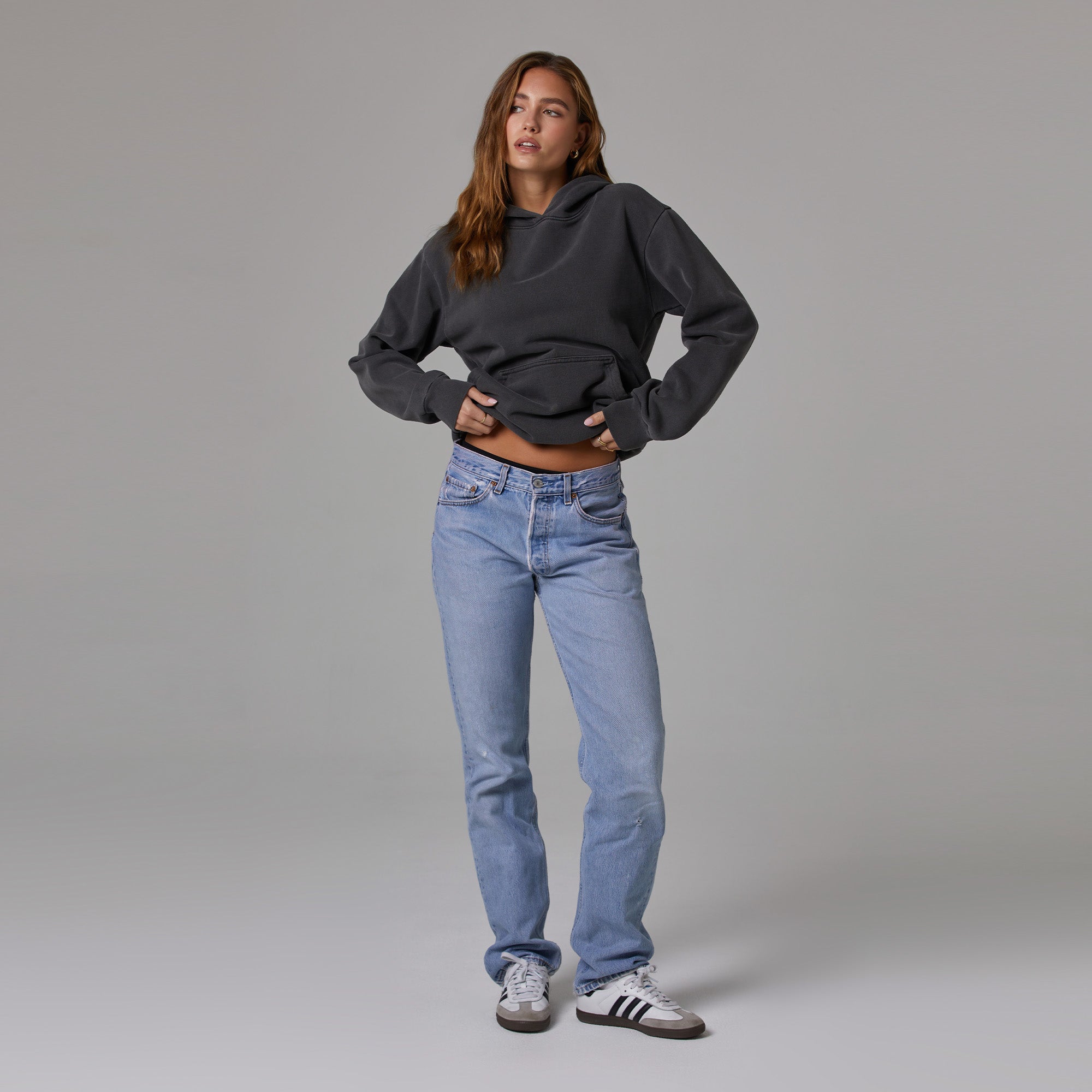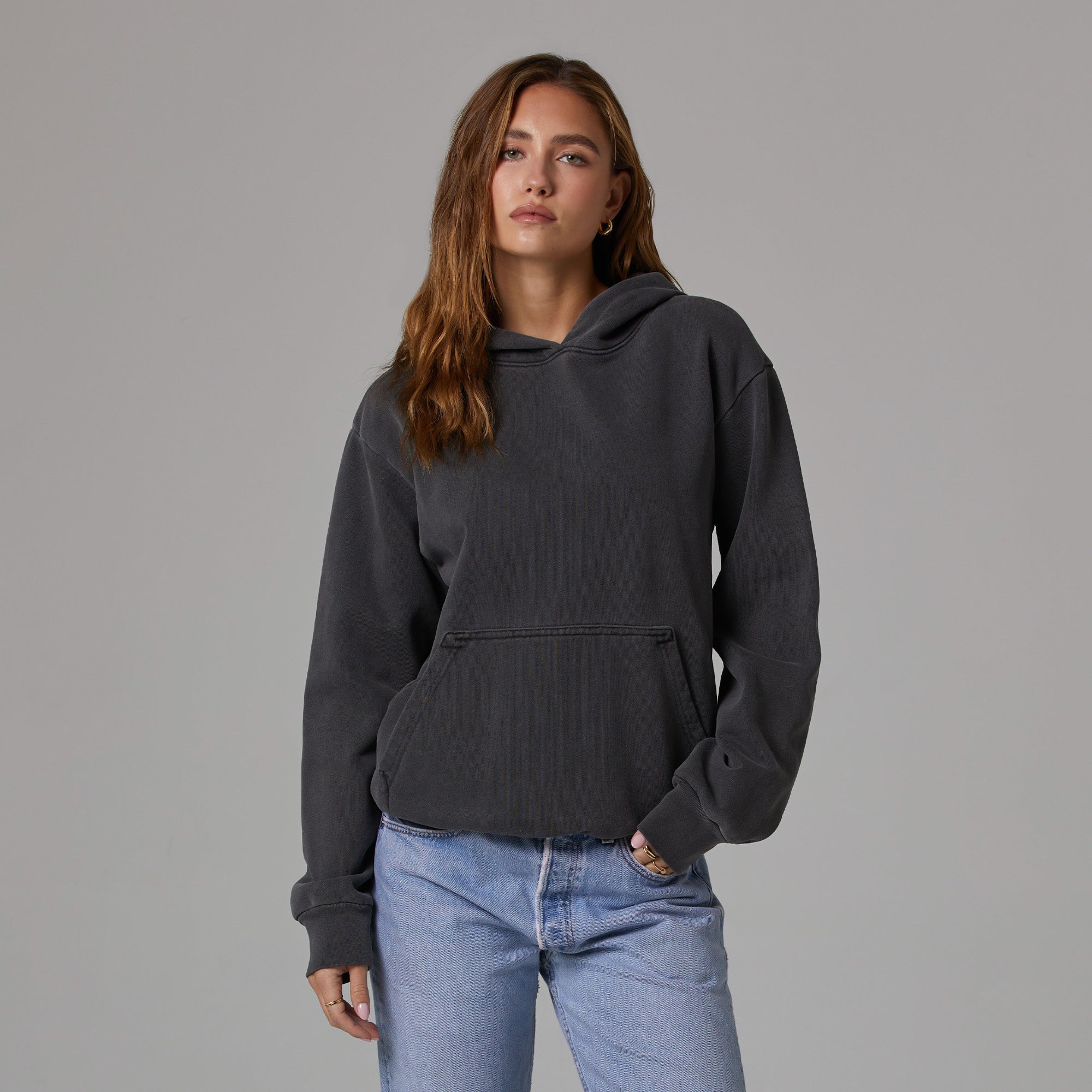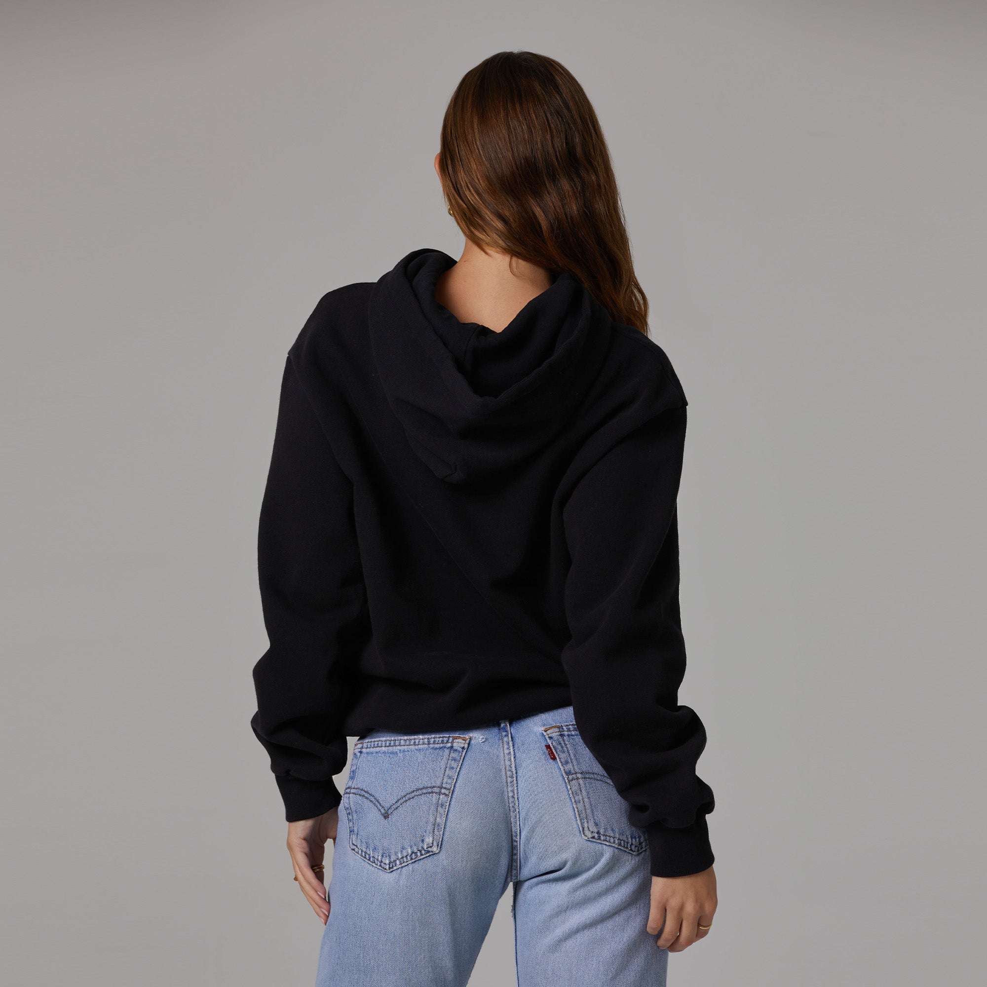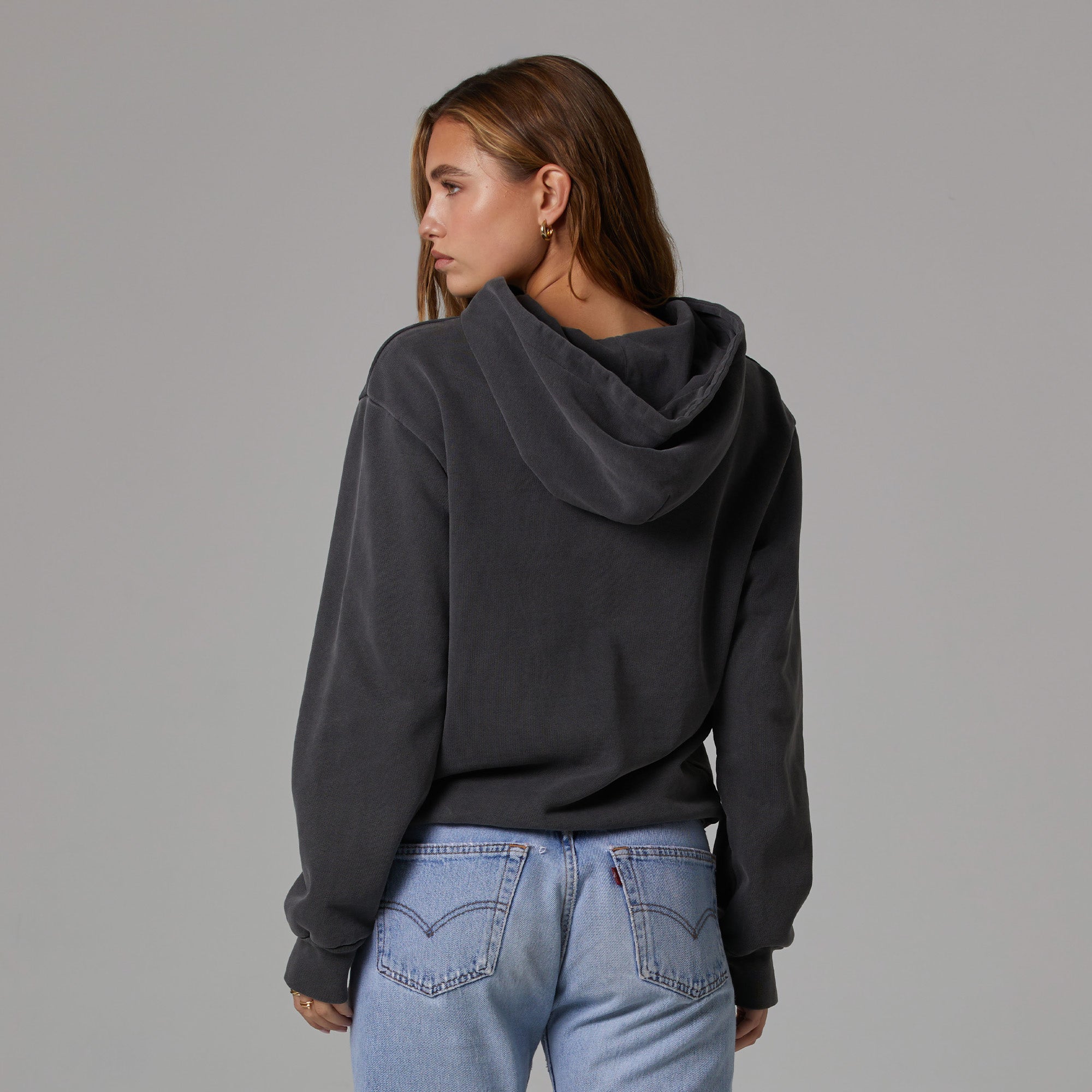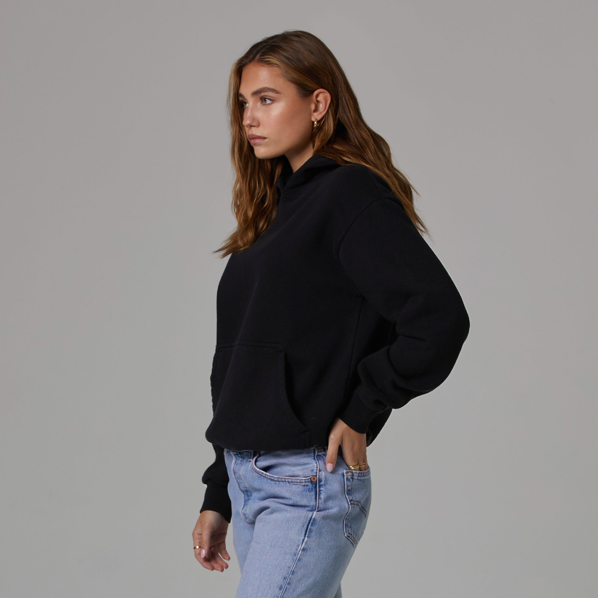 For the Women's Heavyweight Hoodie we recommend sizing up for a looser fit, otherwise the hoodie fits true to size. It is a classic fitting hoodie, if you're looking for a oversized fit, you could try our Men's Heavyweight Hoodie.